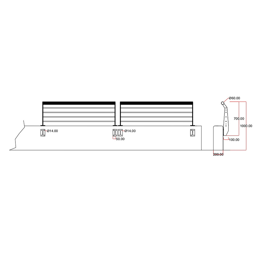 Altezza parapetto 1300, altezza utile 1050 mm larghezza 1250 KN 2,0